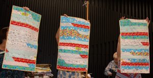 After making a baby quilt for my daughter-in-law I had one strips left over from the jelly rolls. Joined them all together and – Hey Presto! – three crib quilts for Waverley Private Hospital.